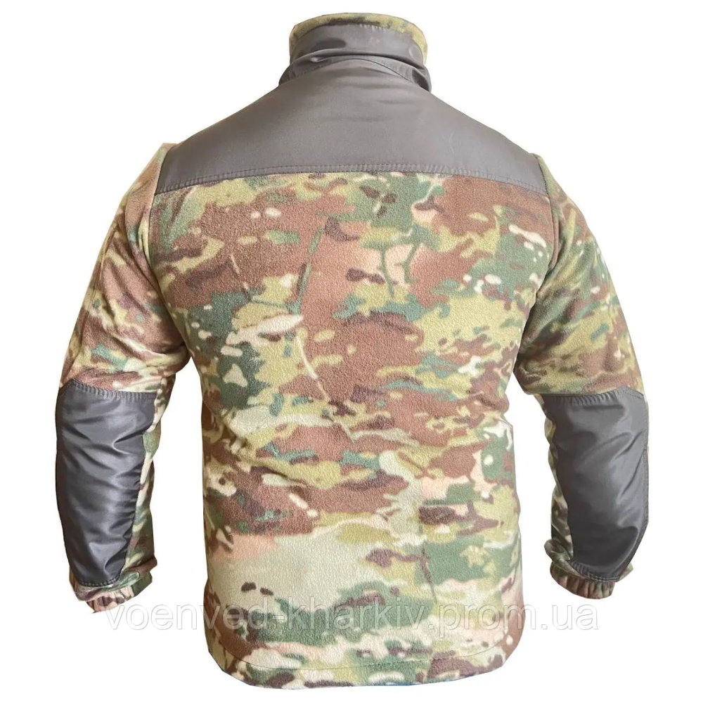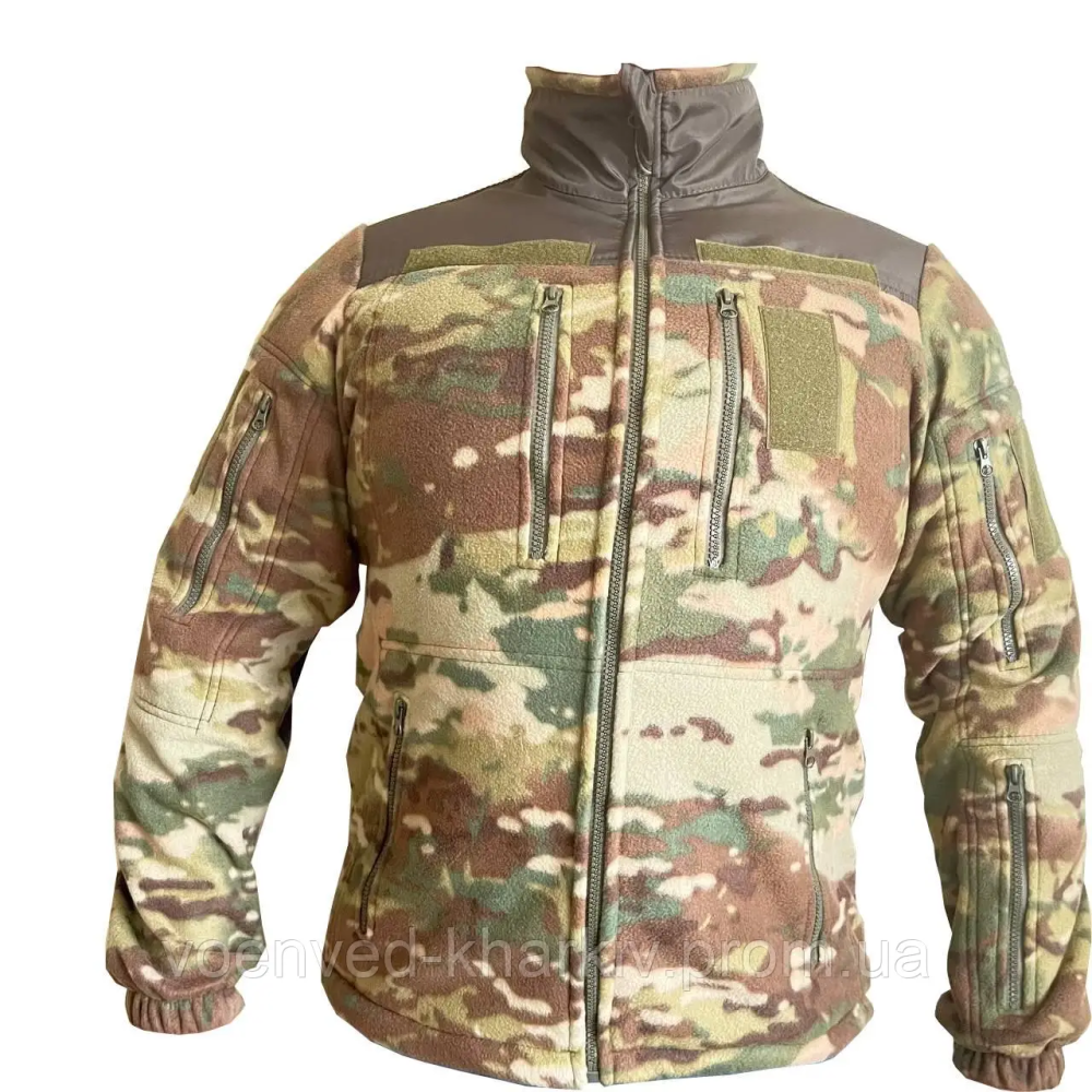 Тепла, м'яка флісова тактична кофта на блискавці ЗСУ мультикам без капюшона з високим коміром, виготовлена з тканини фліс щільністю 290 г/м2 -завдяки унікальним властивостям цього матеріалу, не вбирає вологу і швидко сохне, забезпечує теплоізоляцію навіть у найлютіші морози, водночас дозволяючи виводити зайве тепло та вологу (піт), що виділяється під час тренувань, утримує тепло, забезпечує надійний захист від вітру