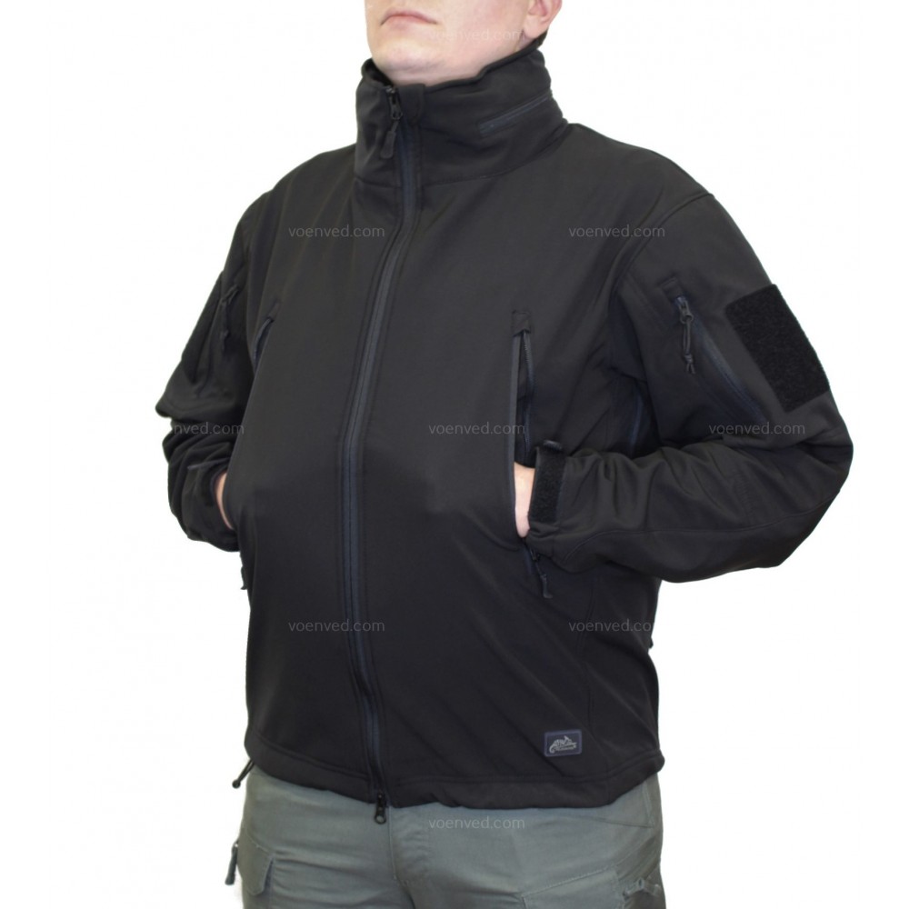 Не обмежуюча рухів виготовлена з еластичного сучасного матеріалу SharkSkin, куртка з капюшоном типу softshell з флісовою підкладкою всередині та на комірі. Ззовні куртка покрита тефлоном DuPont Teflon для захисту від бруду та дрібного дощу.