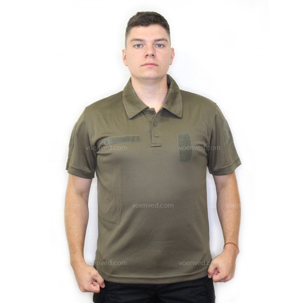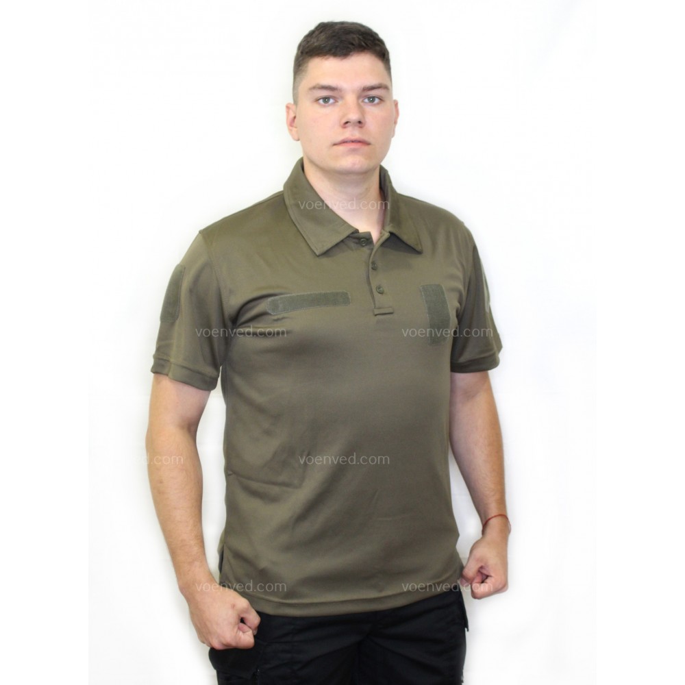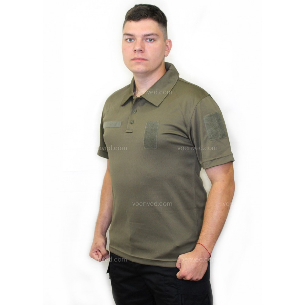 Футболка Поло статутна для ЗСУ має на грудях Velcro-панелі для кріплення погону і нашивки-Прізвища. Кишені не передбачено. Рукав короткий до середини біцепса. Із зовнішнього боку на рукавах пришиті Velcro-панелі під шеврони. На планці коміра є хлястик для підвішування окулярів. Відмінна характеристика моделі - це відкладний комір, який, з планкою, що застібається на три гудзики. За рахунок вплетення в тканину еластану, має хорошу розтяжність для зручності носіння, завдяки цьому не потрібна прасування і зменшується заминання. Добре тримає форму, так що численні прання йому не страшні І витримує велику кількість прань, при цьому тканина не дає усадку, на сонці не вигоряє. і добре тримає форму. Липучки на рукавах: відповідають статутним вимогам. Поло виготовлене з тканини Coolmax. Цей інноваційний матеріал був спроектований спеціально для того, щоб швидко відводити вологу від тіла і залишати його в сухості протягом тривалого періоду. Дана тканина має унікальну будову волокон, завдяки якій властивості зберігаються навіть після тривалого використання. Coolmax - це новий тип поліестеру, що має чотирьох-канальну структуру, тому і має підвищені капілярні властивості. Манжети на рукавах: добре тримають форму рукава, є бокові розрізи: для швидкого доступу до зброі. Переваги футболки поло Coolmax: