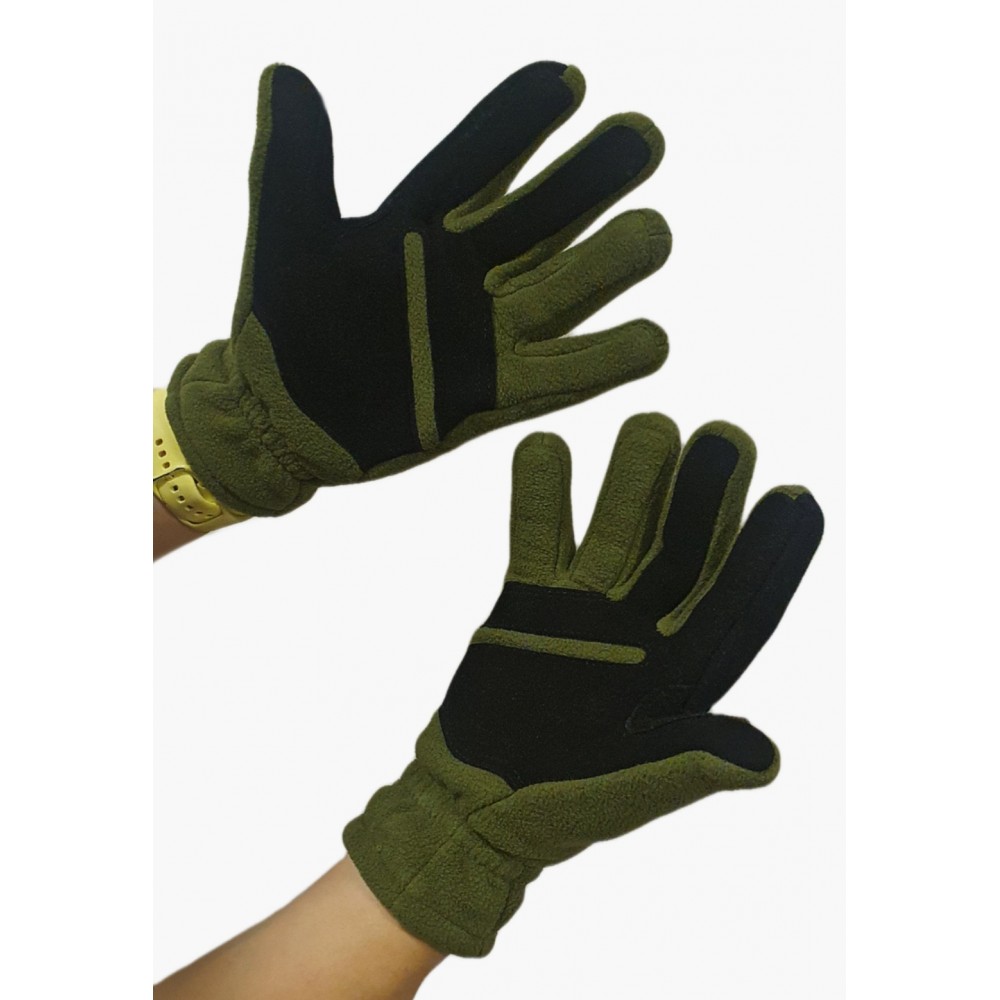 З міркувань армійські зимові чоловічі рукавички забарвлюються в захисні кольори. В даному випадку – олива з чорними шкіряними накладками.