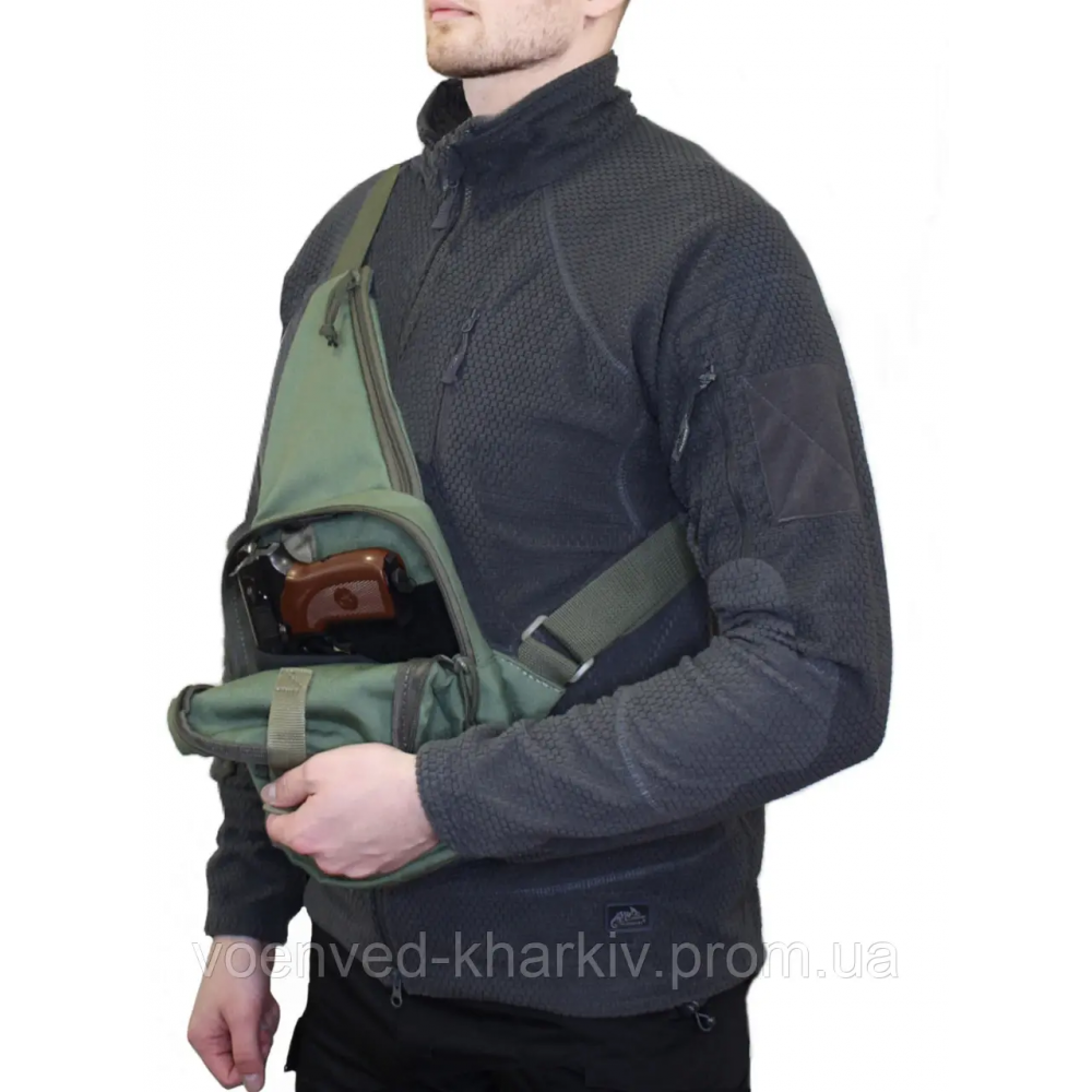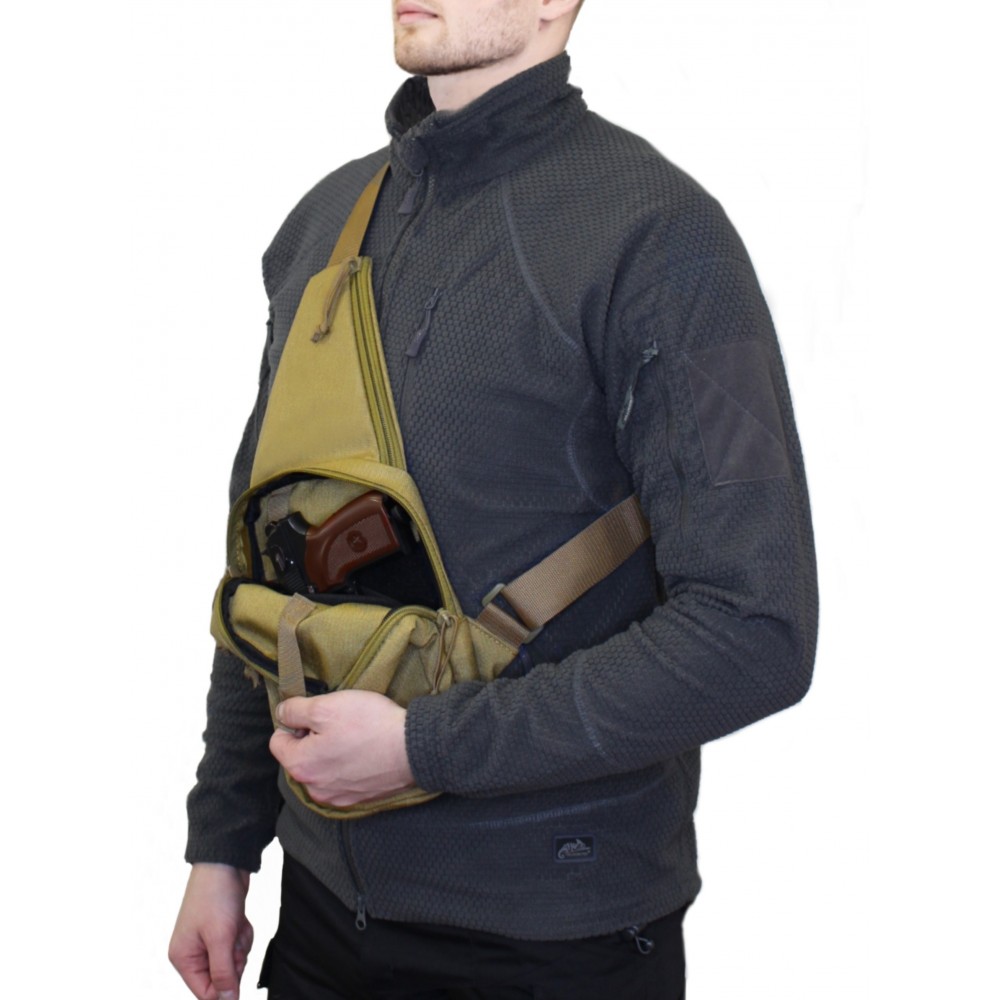 Сумка-кобура прихованого носіння зброї в кольорі олива або койот для прихованого носіння пістолета від Avatex, є чудовим повсякденним аксесуаром, який прекрасно підійде для перенесення документів, ключів, грошей тощо.Сумка-кобура наплічна призначена для транспортування та прихованого носіння короткодульної зброї. Носитися на грудях (для швидкого доступу до зброї), також за спиною або під рукою. Регульований плечовий ремінь завширшки 4 см має діапазон регулювання від 60 до 100 см. Універсальна сумка для щоденного користування з можливістю носіння в ній табельної або травматичного зброї, оскільки в сумці є кобура. Фіксується вона завдяки м'якій текстильній застібці велкро в основному відділенні з можливістю швидкого витягання. Сумка має крім основного відділення ще 5 кишень для документів або дріб'язку. Для обойми передбачене окреме кріплення. Універсальна вона тому, що під час знятої кобури сумку можна використовувати як звичайний органайзер або нагрудну сумку. У виробництві сумки використовуються тканина "CORDURA"1000d, яка вирізняється особливої міцності й водовідштовхувальними властивостями, а також закріплюються шви та високоміцні нитки. Сумка дуже міцна і зроблена максимально якісно. Наплічна сумка-кобура, спеціально створена для прихованого носіння пістолета. Зі швидким доступом до зброї. Один ривок за хлястик із кільцем — і блискавка повністю розкрита! На задній стінці всередині сумки є велика м'яка панель липучки Velcro, на яку ліпиться універсальна регульована кобура-вставка. Тканинні стропи кобури легко регулюються (також на з'єднанні-липучці). Розміри м'якої панелі всередині сумки підвищують варіативність кріплення кобури. Отже, сумка-кобура має сумісність із більшістю пістолетів, включно з великогабаритними армійськими модами типу ТТ або Беретти. У відділенні з кобурою є довгий і міцний хлястик. Ривок за хлястик може неабияк скоротити час відкриття сумки та вилучення з неї пістолета. Сама сумка-кобура виготовлена зі щільної водостійкої нейлонової тканини кордура 1000 d кольору rjqjn і якісно, надійно прошита. Вона міцна, чудово тримає початкову форму та нічим не відрізняється від звичайних цивільних моделей. На передній стінці є три розташовані одна поверх іншої кишені, що закриваються на змійку. Ще один розташований на задній стінці. Об'єм кишень достачений для того, щоб розмістити в них смартфон, ключі та інші особисті речі. Це розвантажує ваші кишені й додатково сховає пістолет, що міститься в сумці. Сумка буде дуже корисна влітку, коли легкий і короткий одяг ускладнює, як носіння будь-якого в кишенях, так і покриття кобури з пістолетом. Але варто зазначити й її незаперечні плюси холодної пори року. Розміщена поверх важкого верхнього одягу, вона неабияк скоротить час виймання зброї та водночас збереже прихованість його носіння. Ця наплічна сумка-кобура є дійсно універсальним і зручним засобом прихованого носіння зброї і, безсумнівно, знайде своє застосування в найрізноманітніших умовах і ситуаціях.