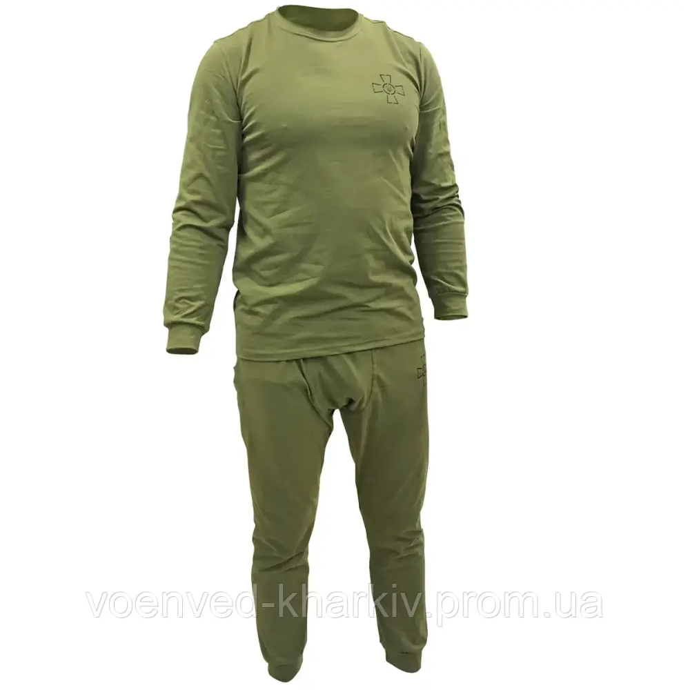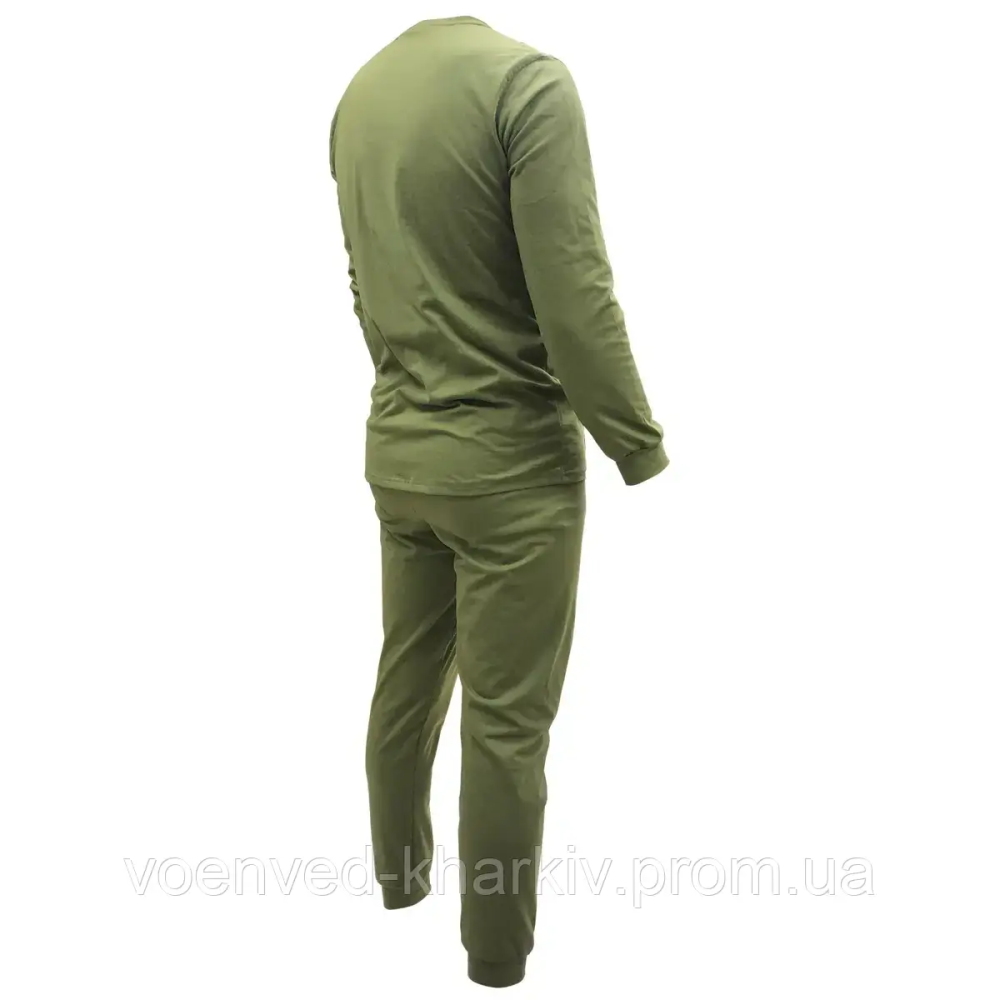 Білизна натільна чоловіча демісезонна статутна ЗСУ пошита з високоякісної бавовняної тканини (95% бавовна, 5% еластан) щільністю 150 гм/м. Комплект складається з верху (футболка з довгим рукавом) і низу (кальсони).